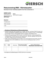 Retourenantrag RMA und RMA für Wärmetauscher
